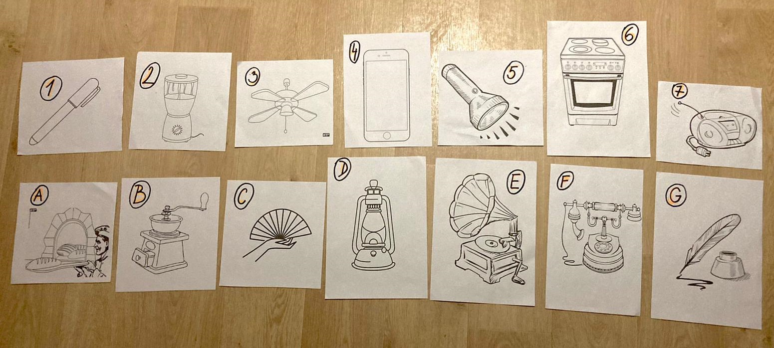 Úkol: přiřaď k sobě správně vždy dva obrázky věcí z dob minulých a ze současnosti.